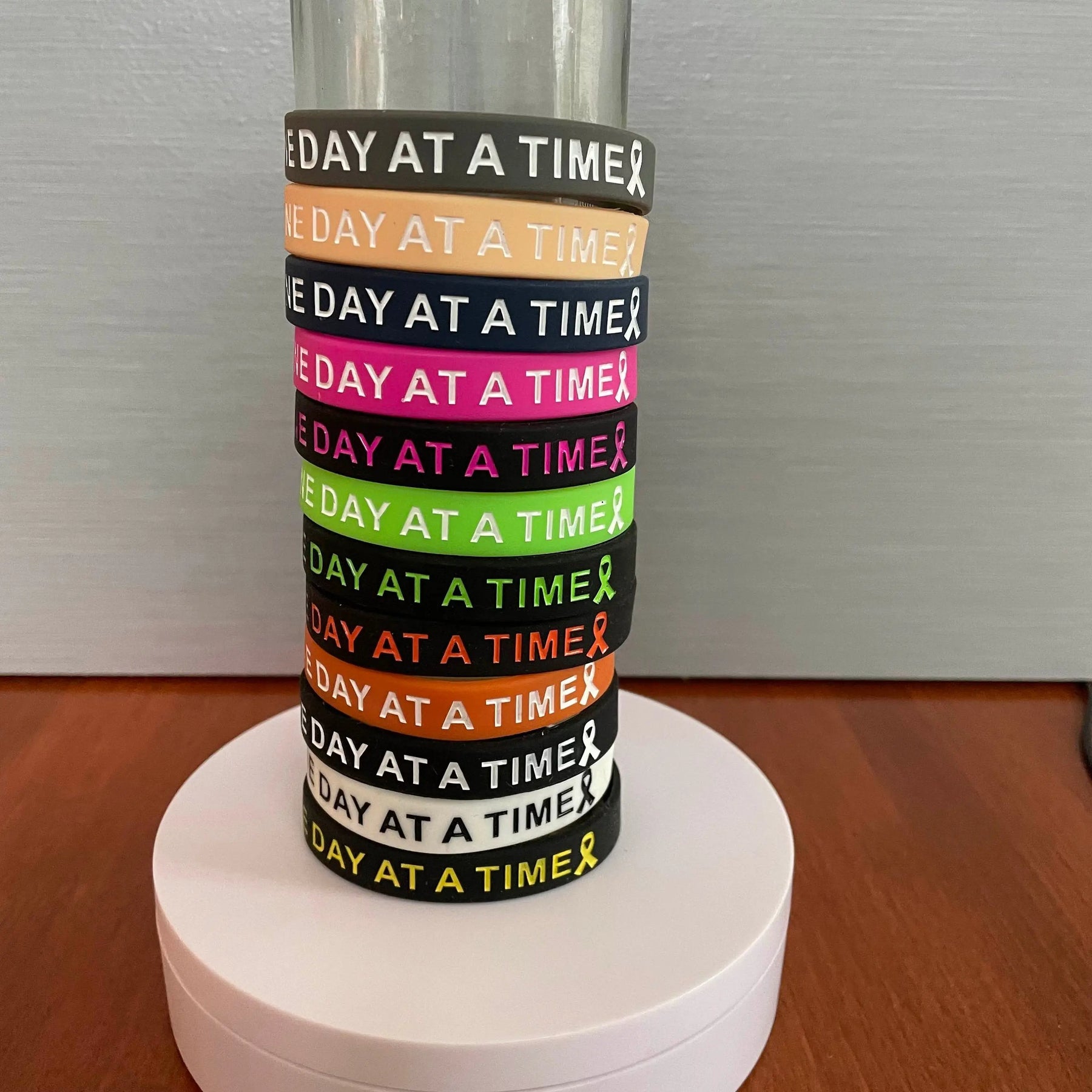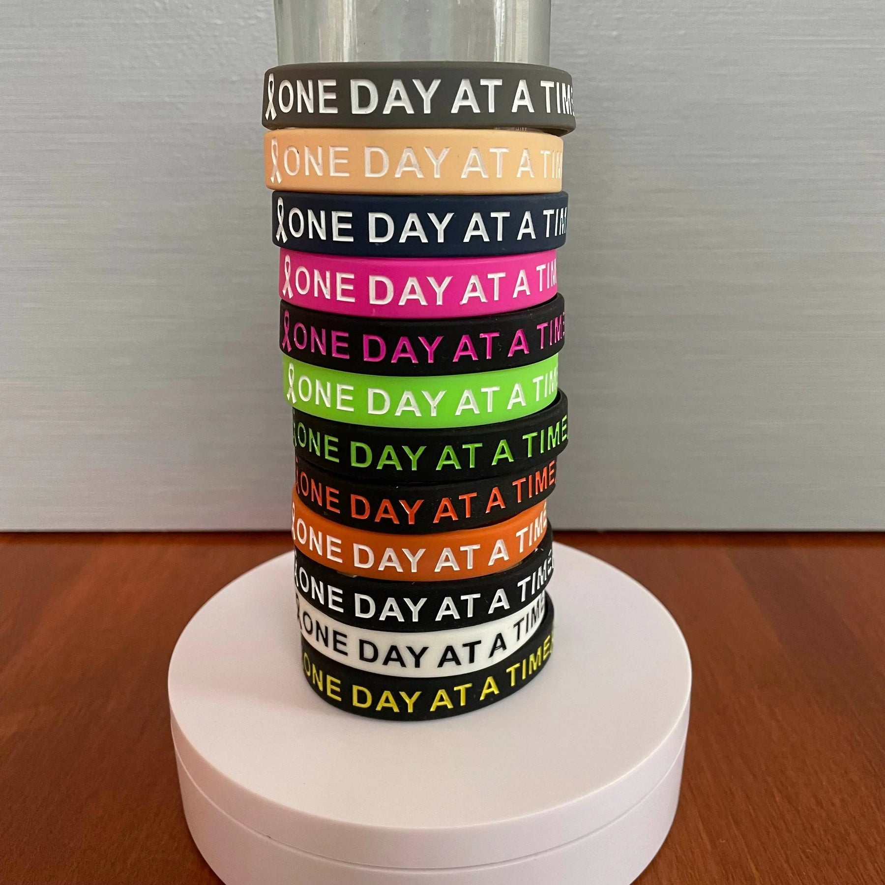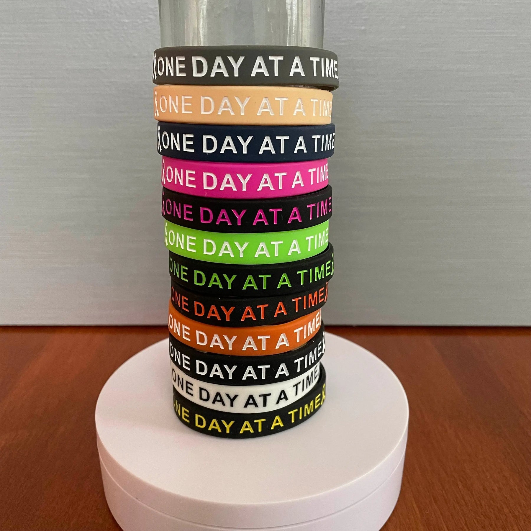 These silicone wristbands were made to remind us it's a marathon, not a sprint. One Day At A Time