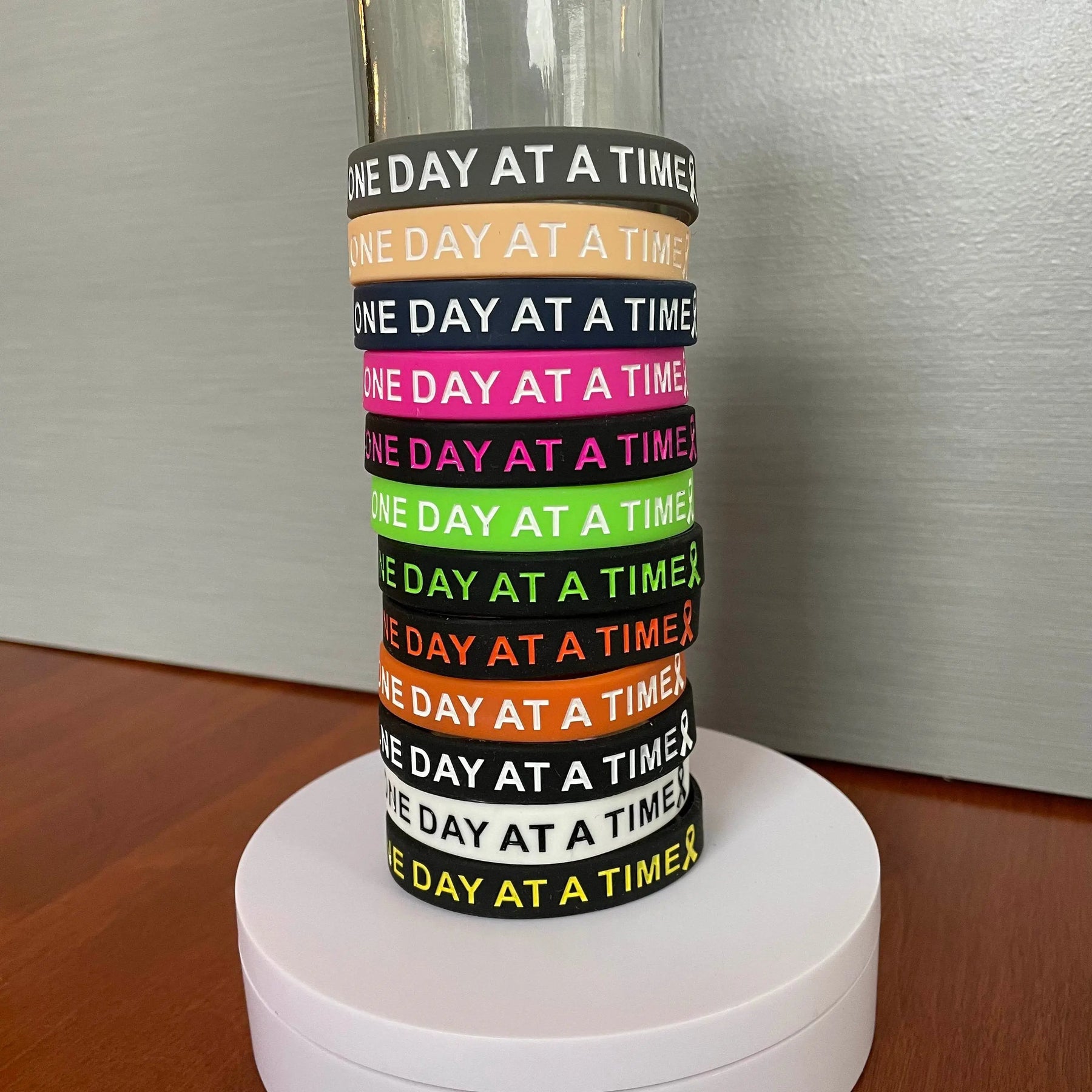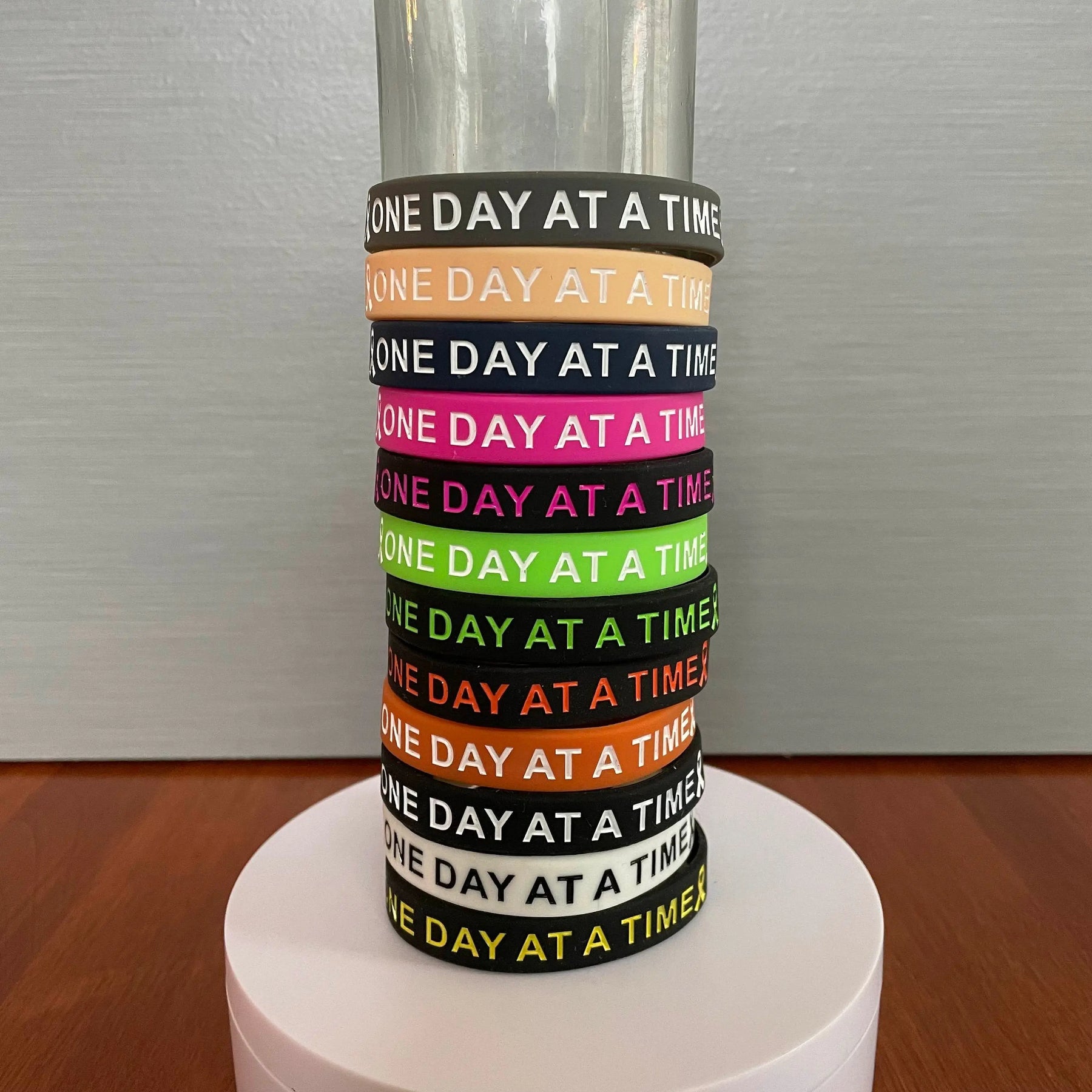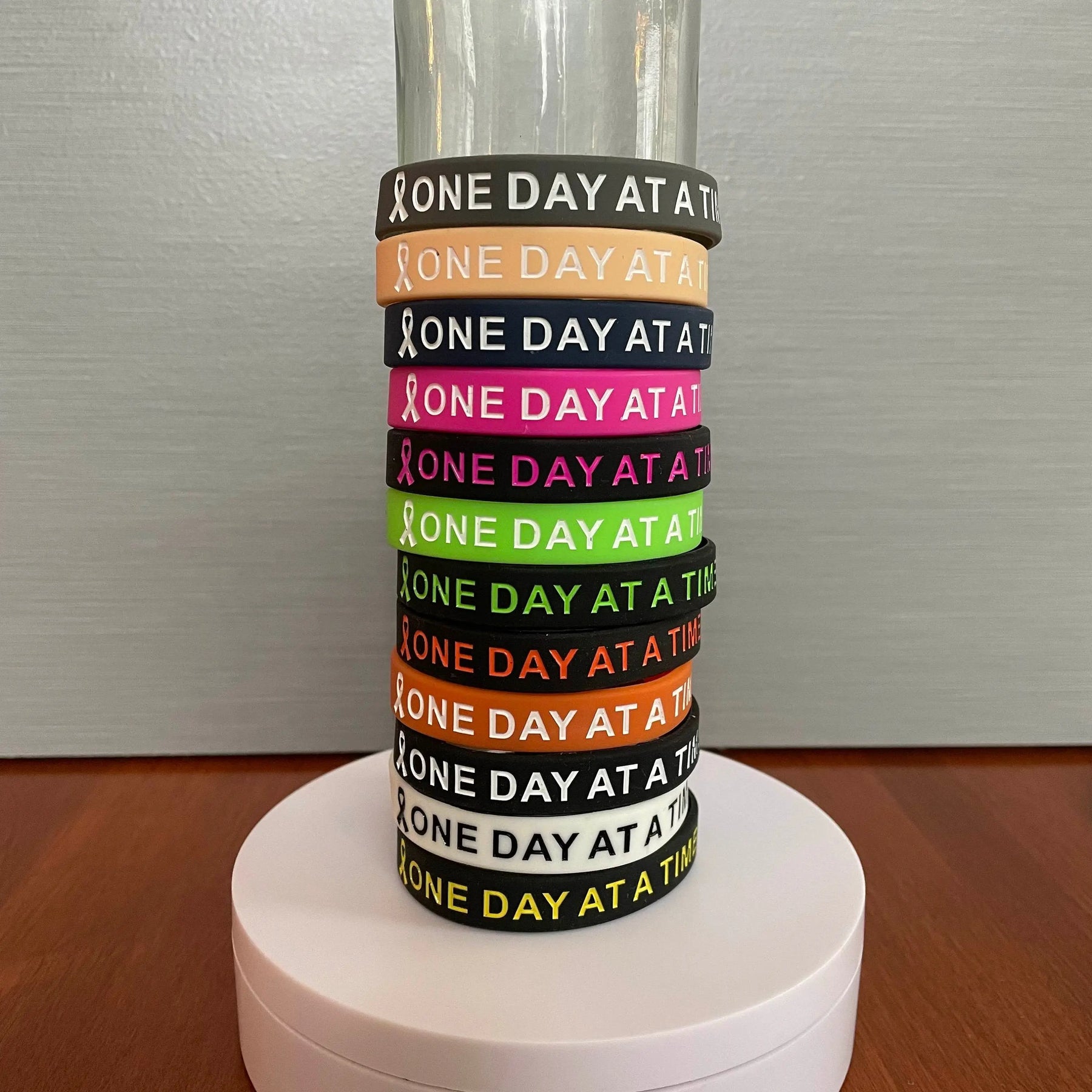 These silicone wristbands were made to remind us it's a marathon, not a sprint. One Day At A Time