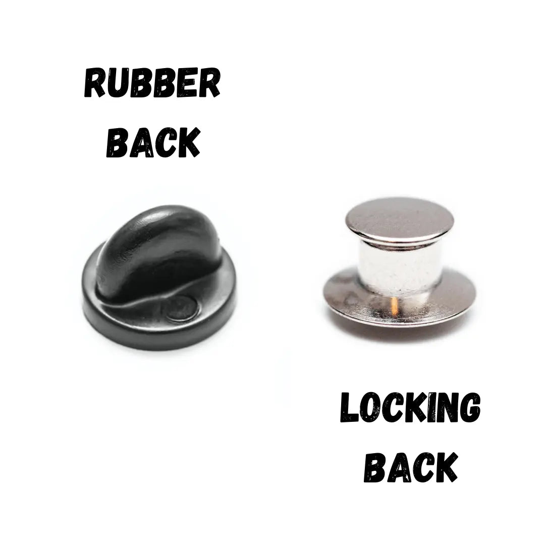 *Includes black rubber pinbacks — locking backs available as an upgrade