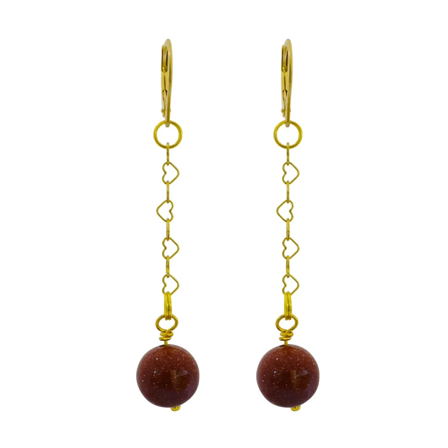 Introducing "Link + Shine" our stunning Brown Goldstone and Yellow Gold Vermeil Heart Chain Earrings. These earrings feature shimmering brown goldstone beads set in yellow gold vermeil, creating a luxurious look that will elevate any outfit.