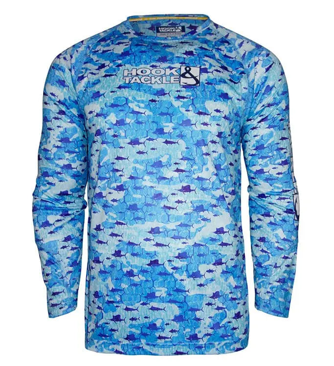 Protect yourself from the sun’s harmful UV rays with the Hook & Tackle performance fishing shirt. Proprietary Solar System UPF 50+ rated fabric incorporates the latest sun protection technology. Wicked Dry & Cool fabric technology wicks moisture from the skin to enhance your comfort level. Designed with radial sleeves to allow you a full range of movement when casting or reeling in. Available in boys sizes: S (8) , M (10/12), L (14/16), XL (18/20).