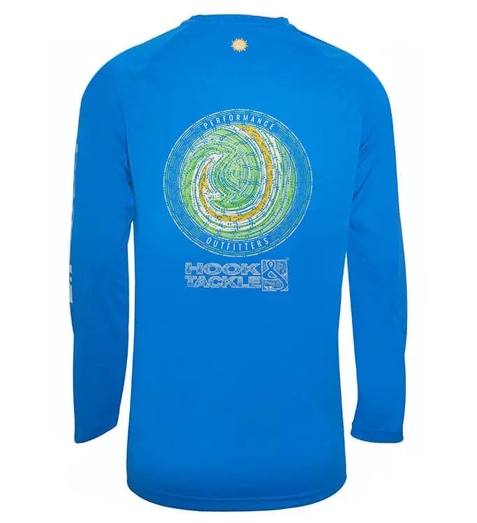 Protect yourself from the sun’s harmful UV rays with the Hook & Tackle Hooked performance fishing shirt. Proprietary Solar System UPF 50+ rated fabric incorporates the latest sun protection technology. Wicked Dry & Cool fabric technology wicks moisture from the skin to enhance your comfort level. Designed with radial sleeves to allow you a full range of movement when casting or reeling in. Available in boys sizes: S (8) , M (10/12), L (14/16), XL (18/20).