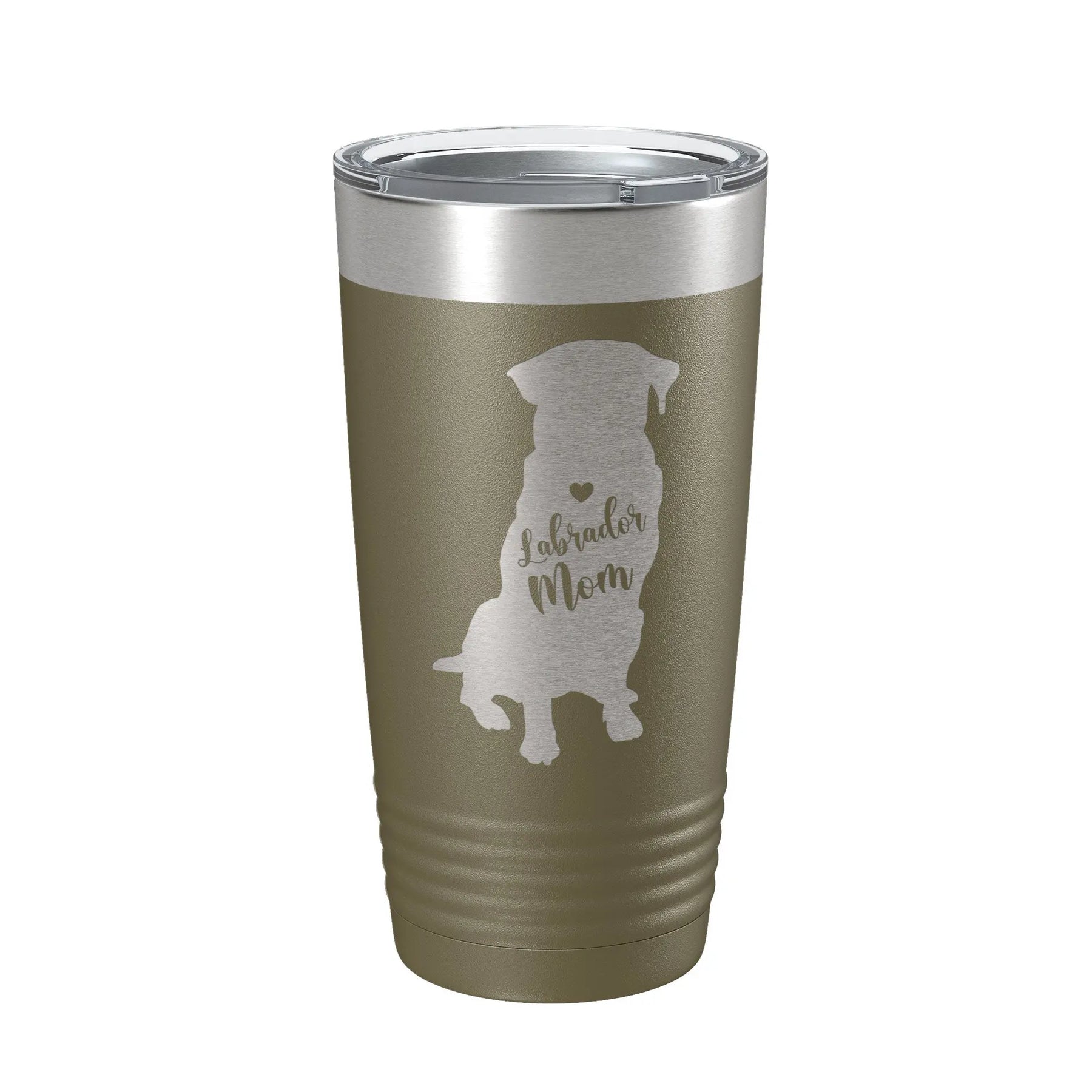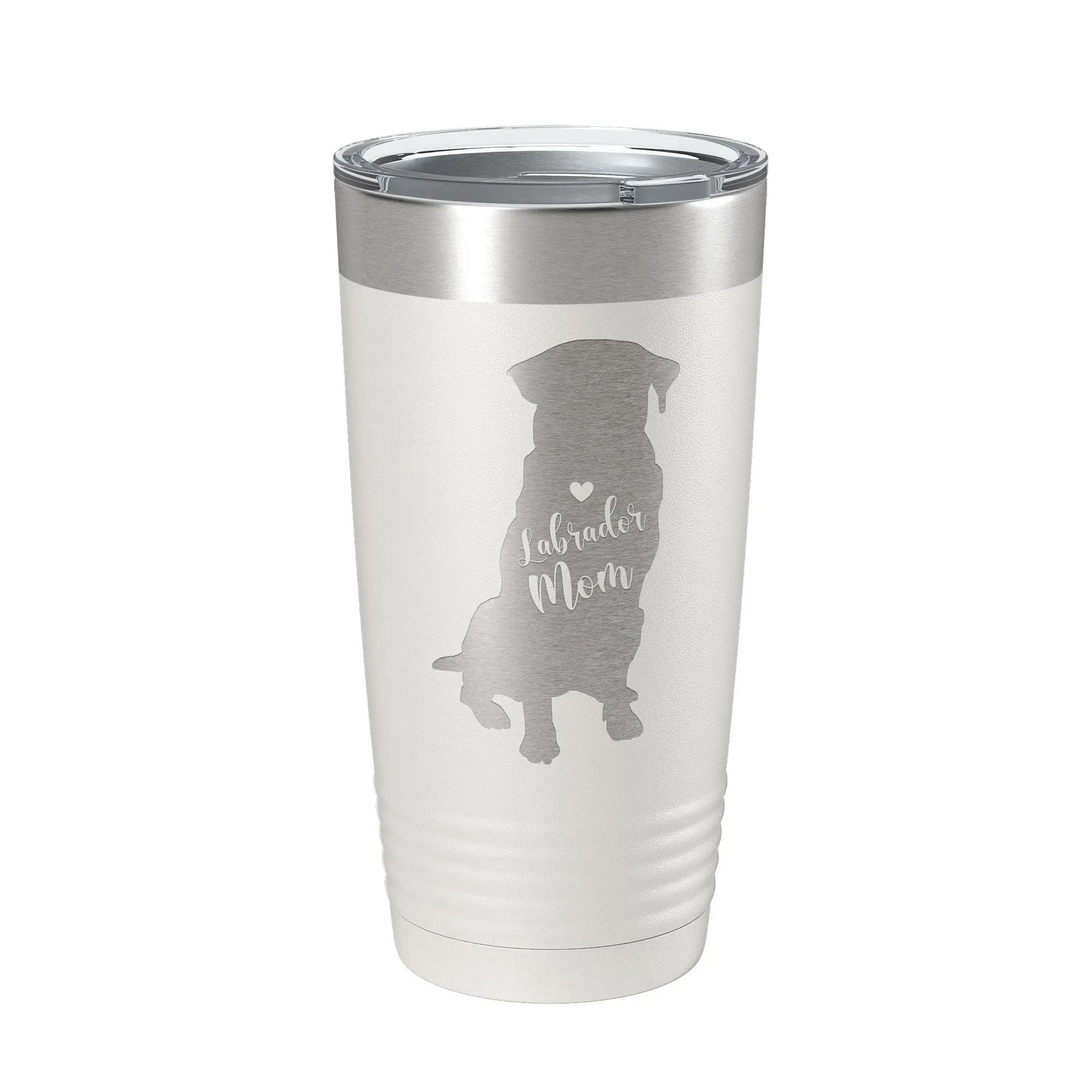 Labrador Retriever Lab dog mom tumbler is made from 304 stainless steel and the design is permanently laser etched into the powder coat. The design will not peel or fade unlike vinyl decals and stickers. Clear lid is included and the hole on the lid is big enough for a straw. Double-wall vacuum insulation means the cup will not sweat and it keeps drinks hot or cold for hours. Mug has a narrower bottom to fit most standard cupholders. Ridges provide a secure grip. Cup measures 6.76" tall x 3.46" wide at top. Holds 20 fluid ounces or 591 mL. Hand wash only. 100% BPA free. Unique gift idea for birthdays, anniversaries, housewarming, Christmas, Mother's Day, Father's Day, bachelor/bachelorette parties, real estate clients, etc. Each bottle comes individually boxed for easy gifting and convenient packaging.