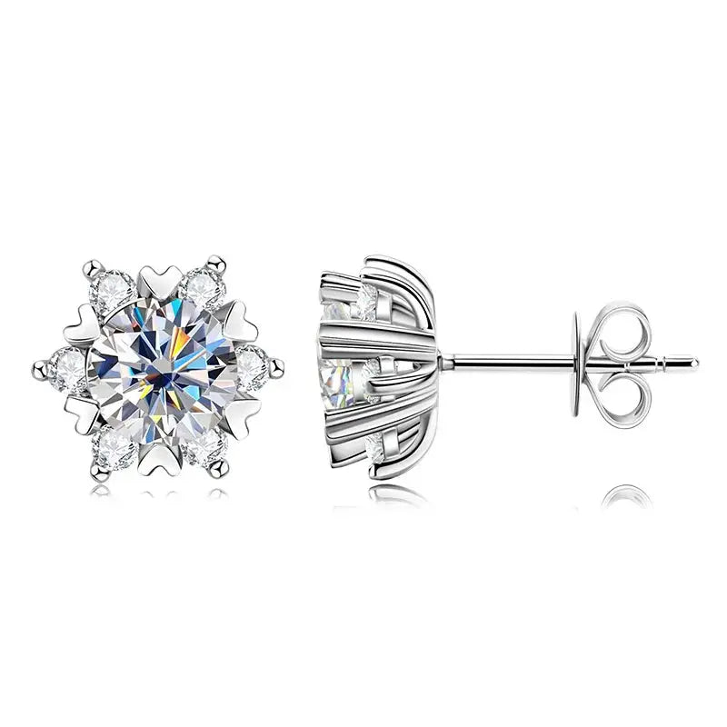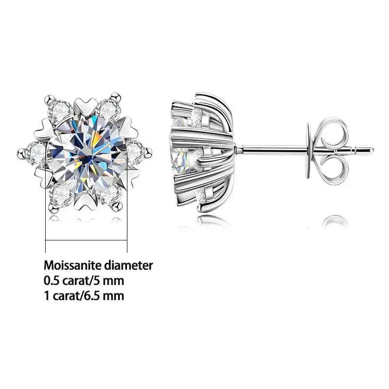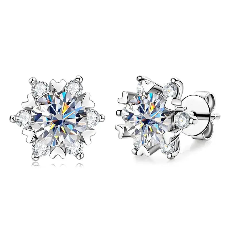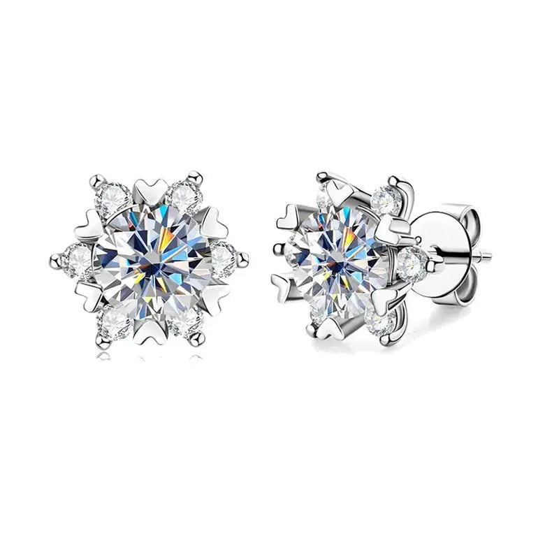 Sterling Silver Earrings Moissanite Snowflake Earrings 6-Claw Valentines Gift are elegant, sparkling earrings designed to capture the beauty of winter and the spirit of romance. Featuring brilliant moissanite stones set in a secure 6-claw sterling silver setting, these stud earrings create a timeless look perfect for Valentine’s Day, anniversaries, or special occasions.