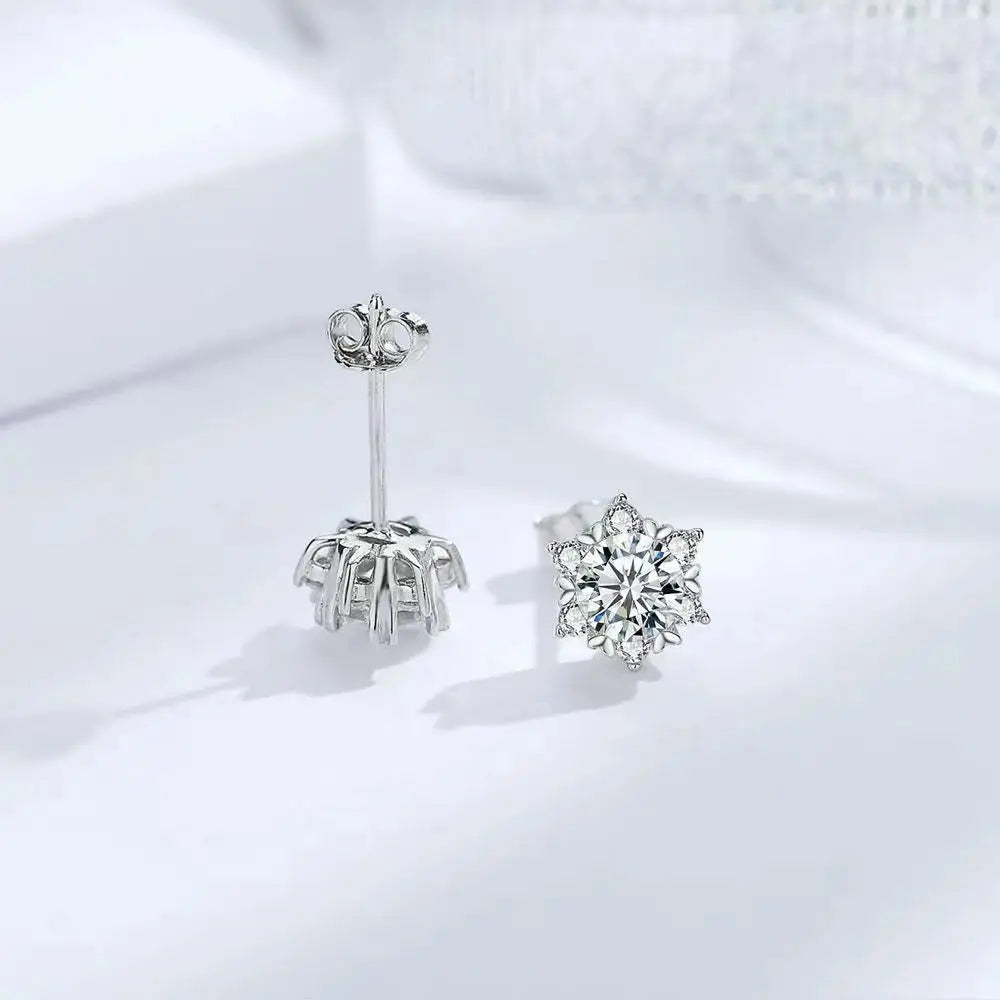 Sterling Silver Moissanite Snowflake Earrings 6-Claw Valentines Gift showcase precision craftsmanship, ensuring that each earring sparkles from every angle. Moissanite is renowned for its brilliance and fire, rivaling diamonds while offering affordability and durability. The sterling silver setting adds sophistication, making these earrings versatile enough for everyday wear or formal events.
