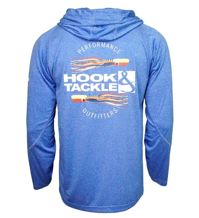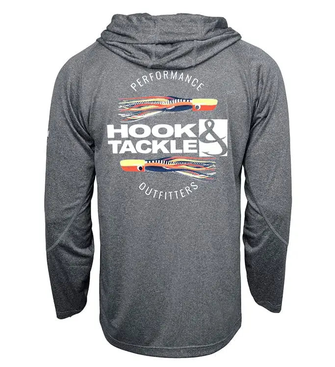 Protect yourself from the sun’s harmful UV rays with the Hook & Tackle Offshore Lures Hoodie performance fishing shirt. Proprietary Solar System UPF 50+ rated fabric incorporates the latest sun protection technology. Wicked Dry & Cool fabric technology wicks moisture from the skin to enhance your comfort level. Designed with radial sleeves to allow you a full range of movement when casting or reeling in.
