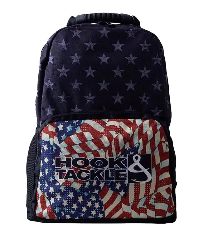 Celebrate America with this one-of-a-kind Hook & Tackle fishing backpack. It boasts great compartments so you can stash gear quickly and hit the road or sea.