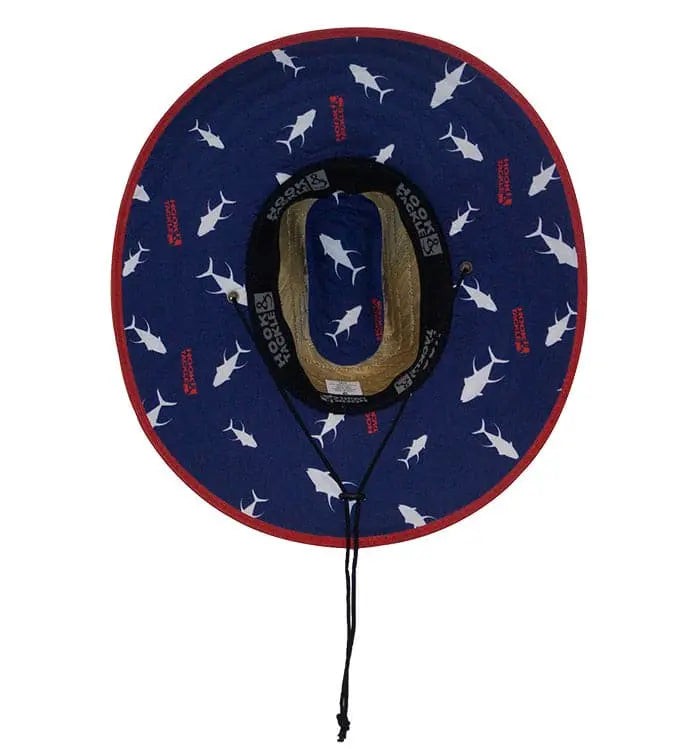 The White Tuna Lifeguard stretch fit fishing hat will stop the sun's rays right in their tracks. It features a high quality straw, front woven patch, printed under brim and interior crown, AEGIS® odor-resistant stretch fit headband, anti-glare under-visor and adjustable chin strap. Size M-L fits head sizes 23" - 23 1/2" and L-XL fits head sizes 23 3/4" - 24 1/8".