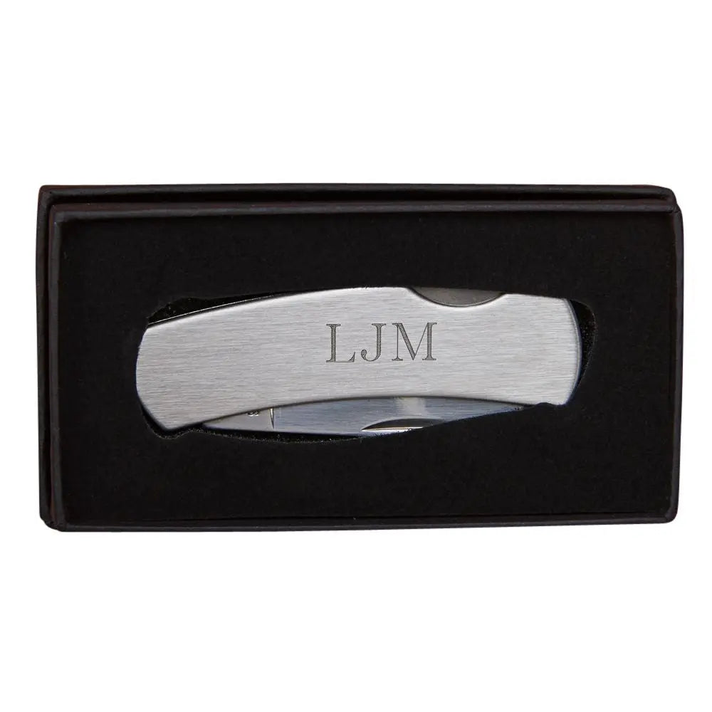 This stainless steel pocket knife features a locking mechanism to prevent the blade from accidently closing when it's expanded. The blade can only be closed when the "lock" is depressed. It also features 2 smooth plain sides that are great for engraving or some other decoration. 3" L when closed and 5" L when open. Gift Boxed.