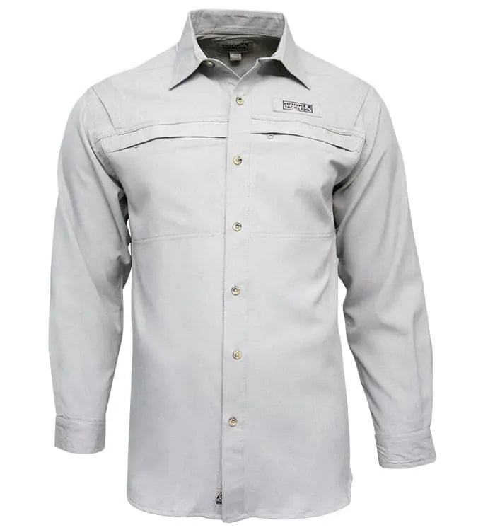 Enjoy your next trip to this well-known spot wearing Hook & Tackle’s® Matheson Hammock long sleeve fishing shirt. Made of micro-filament yarn polyester and featuring moisture-wicking mesh lining, vented back, front pockets with hook and loop closures, roll-up sleeves with tab, embroidered eyelets, and fly rod/utility loop.